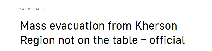 作为乌东四地之一的赫尔松因近日持续遭到乌方炮火攻击,(俄方任命的)赫尔松州代理州长弗拉基米尔·萨尔多当地时间10月13日请求莫斯科帮助撤离平民。对此,俄罗斯副总理马拉特•胡斯努林10月13日回应,政府同意帮助当地居民撤离。
