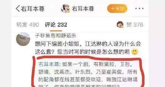 “难道江达琳塌陷了,你真的觉得是编剧有问题?”