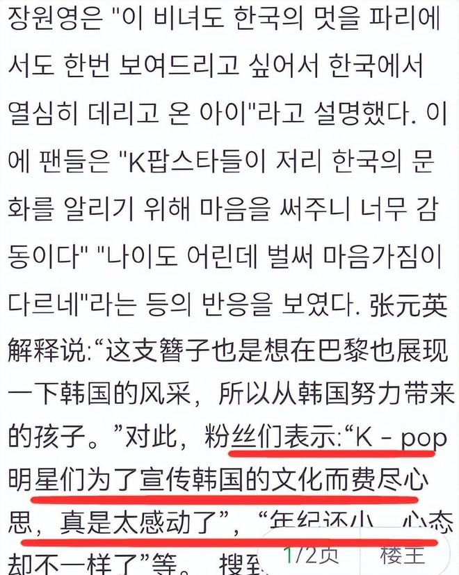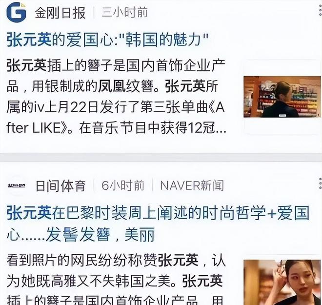 韩国媒体称赞张元英有爱国心,韩网友也夸她虽然年纪小但已经有格局等等。