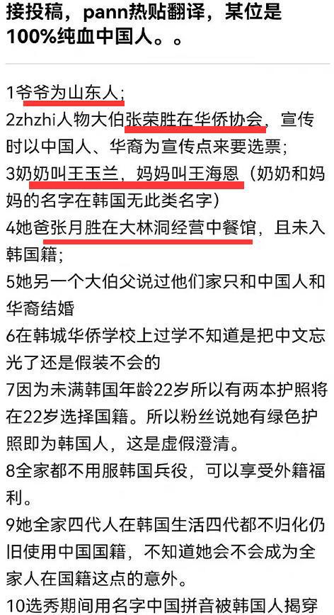 韩国网友亲自下场,扒张元英疑似不是韩国人而是中国人。