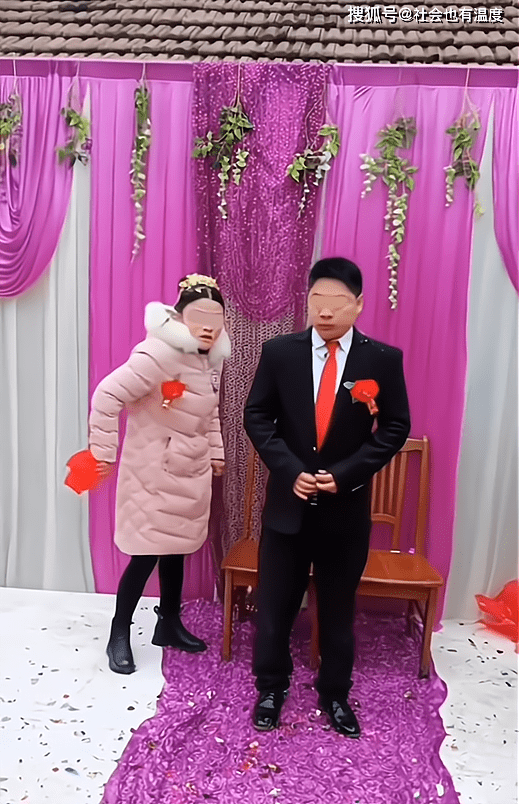 即便如此,这位家境贫困的新郎仍然闷闷不乐,在拜堂的过程中一直板着脸,全程都没看过新娘一眼,跟机器人一样按司仪的指令操作。