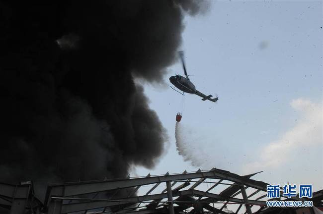 9月10日,军方直升机在黎巴嫩首都贝鲁特港口区灭火。