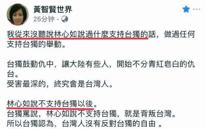 现在,林心如因为公开承认了“只有一个中国”,变得两边都不是人。