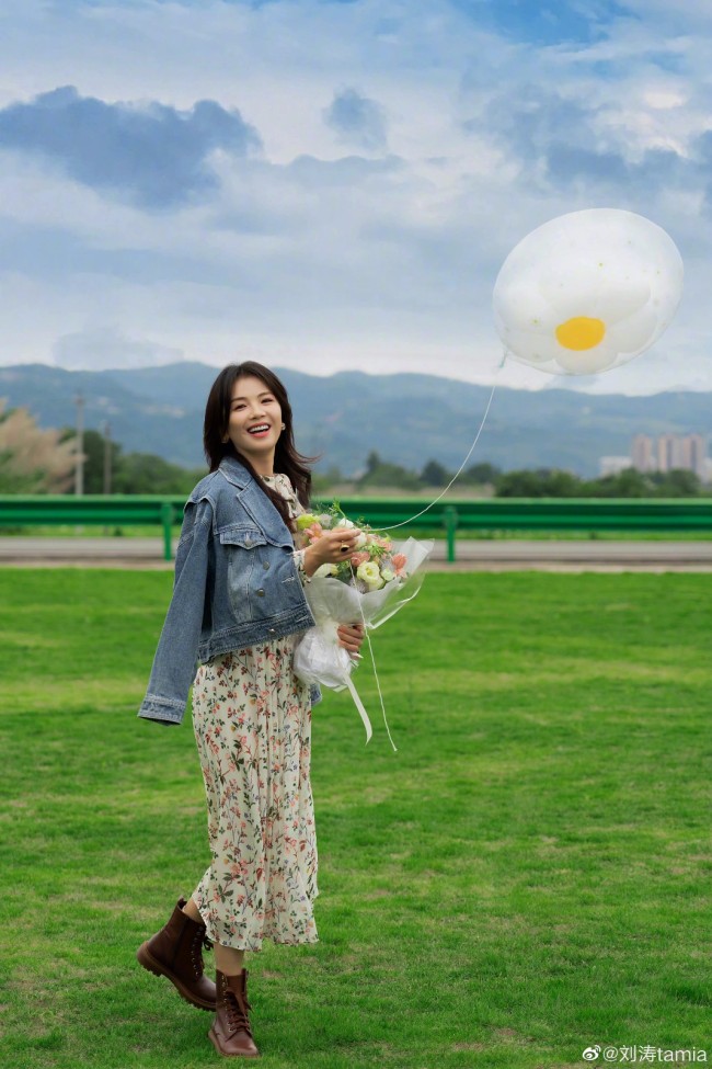 23日,刘涛晒出一组最新照片。她身穿牛仔夹克搭配碎花长裙,手里拿着气球与鲜花,温暖治愈画面美好。