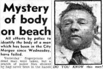 1948年12月1日,澳大利亚阿德莱德当地珠宝商约翰·里昂在萨默顿海滩上游玩发现了一名男子躺在沙土上,该男子西装革履,嘴里叼着一根香烟,约翰·里昂向身边的人指着这男士说,这男人好悠闲、潇洒躺在那里,几个朋友打量一番。