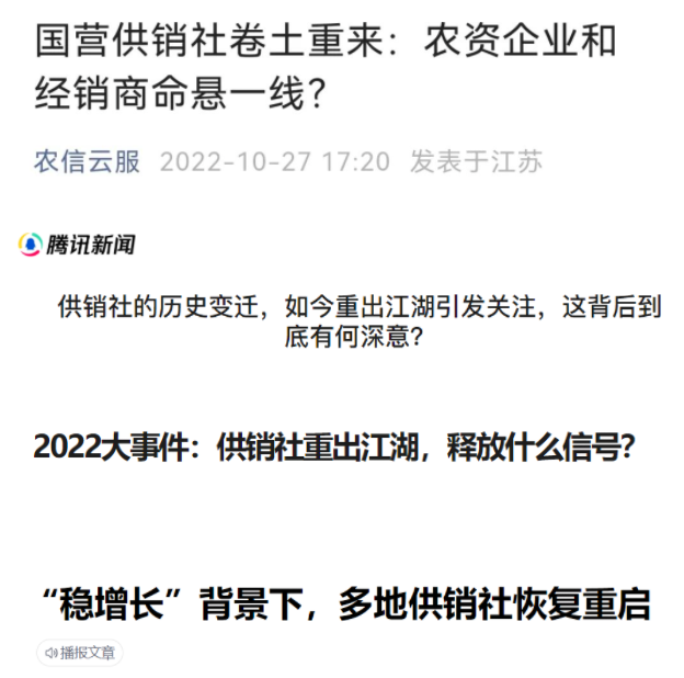 上面啰里啰嗦说了这么多,其实我今天并不是想说供销社。最近一段时间,关于供销社的“炒作”主要围绕以下几个点: