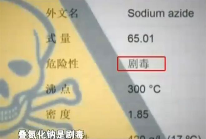 之前他在做实验的时候,就用到过这种化学品在做实验的时候,必须佩戴防毒面具才可以使用叠氮化钠,因为它含剧毒,如果吸入蒸汽可能会导致死亡。