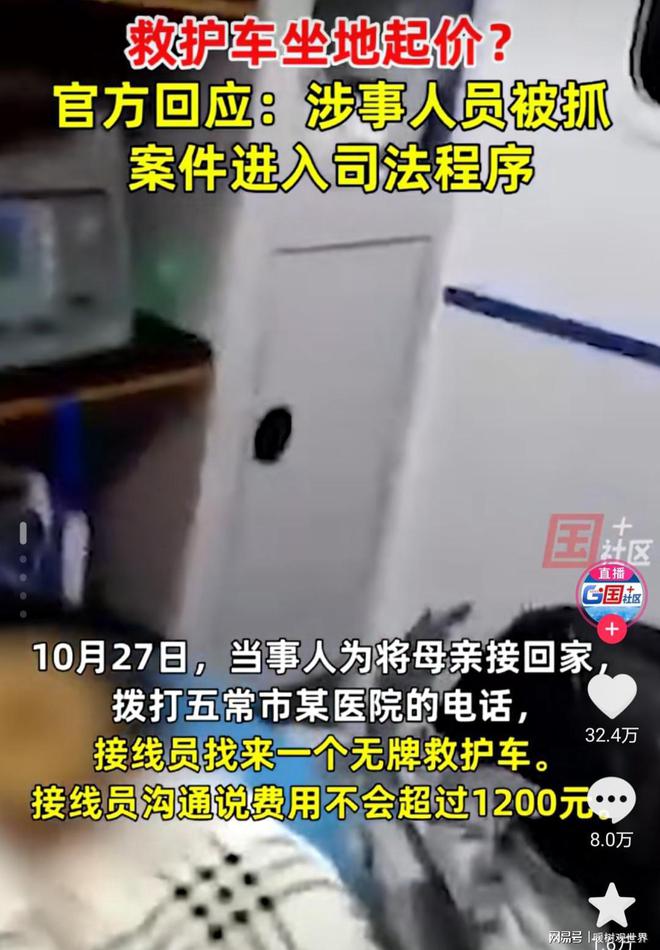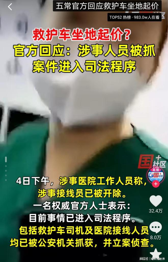 随着事情在网上发酵开来,涉事的医院急忙和救护车司机和接线员扯清关系,医院回应:这是接线员的个人行为,已经将她开除,他们是正规医院,是接线员把这个单子私下介绍给了没牌的救护车!正规的救护车一公里就12元左右,氧气机这些费用包含在里面!
