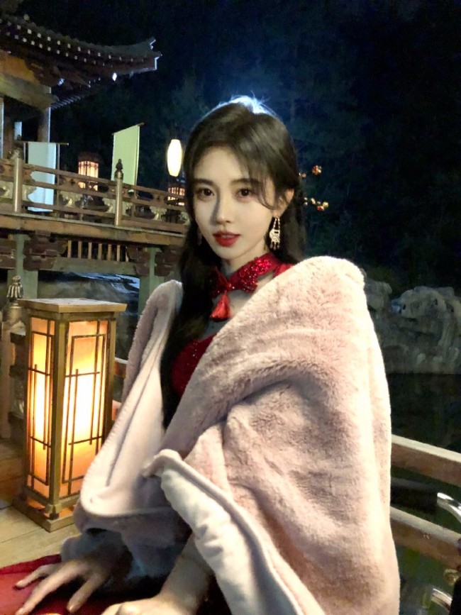 鞠婧祎红衣披风造型绝美 五官精致颜值高