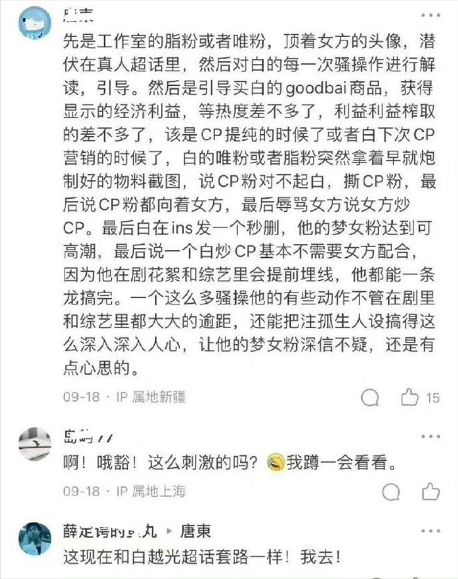 有一说一,白敬亭这一系列做法,要是和贵圈的渣男、法制咖们相比,实在算不上多么过分,可是仔细想一下的话,本质还是属于婊里婊气,绿茶味冲天,他的套路一次又一次的按部就班,惹得不少的网友是不胜其烦,怪不得这一次他和宋轶的恋情曝光之后,各家的CP粉仿佛疯了似的,纷纷下场倒油,总而言之,随着这一次白敬亭和宋轶两人的恋情曝光,白敬亭不少老弟也算是被网友给全部扒出来了。