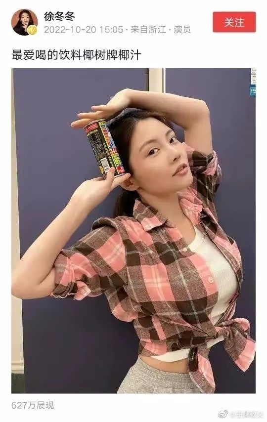 【哈?离谱了!徐冬冬回应椰奶我只喝鼻孔喷出来的】近日,有网友把椰汁包装上的徐冬冬两个鼻孔戳出洞往外喷椰汁,并搞笑发文表示“椰奶我只喝鼻孔喷出来的哈哈哈哈哈哈哈”。