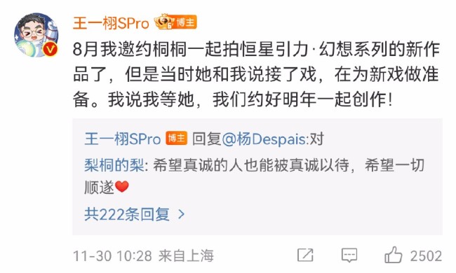 【李一桐将不再出演武庚纪。 我来告诉你这里面的曲折】29日,李一桐工作室发布声明,由于剧方不告知宣传方式和节奏,李一桐将不再出演《武庚纪》女主。
