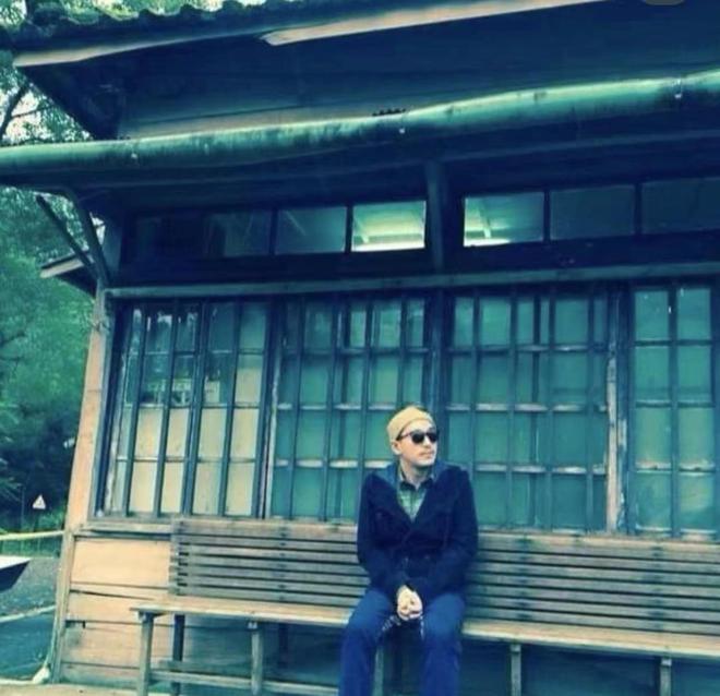 照片中的他身穿黑色T恤和黑色长裤,头戴同色系鸭舌帽,一身休闲打扮,十分时髦。