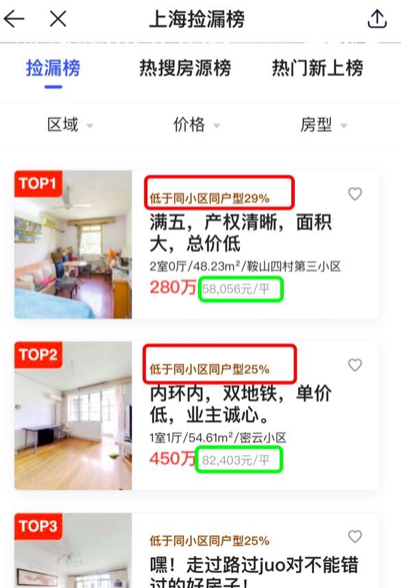在贝壳捡降价幅度前十的房源,降价幅度均在20-29%左右,近一半来自杨浦鞍山。