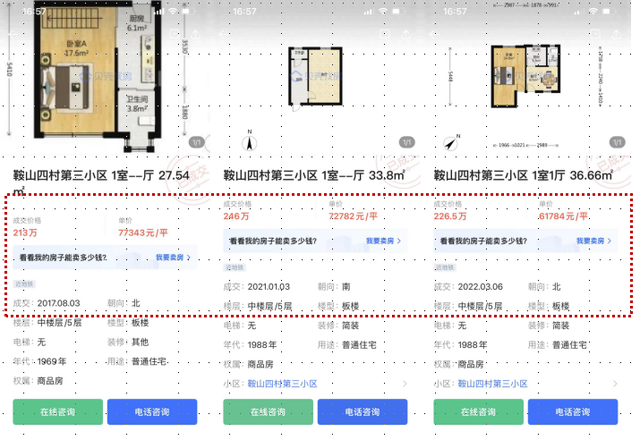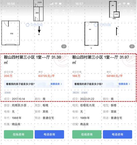 这套对门分的户型,17年的时候,成交单价是6.3万多。而到22年1月,成交单价只有5.8万。
