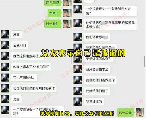 而在眼见事情败露后,其女友李陆雪的解释也是比较奇葩。她表示自己与两个男的出轨时心里想的都是男友,并且表示自己并非自愿,是被逼迫的。而男友郑卿皓显然已经是火冒三丈了。