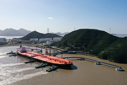 2019年11月14日,30万吨级的油轮靠泊在浙江舟山群岛新区册子岛实华码头。图|视觉中国