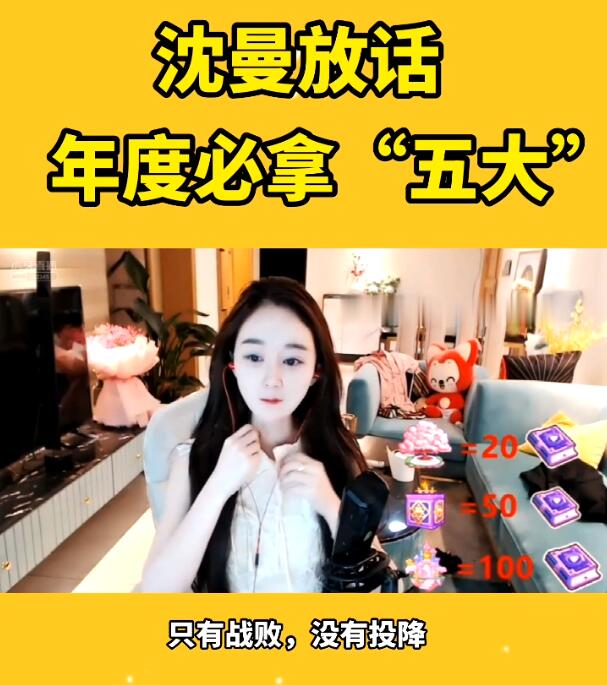 而沈曼也是展现了她成都妹子“狂”的一面,她在直播时表示虎牙年度“五大”自己必上。