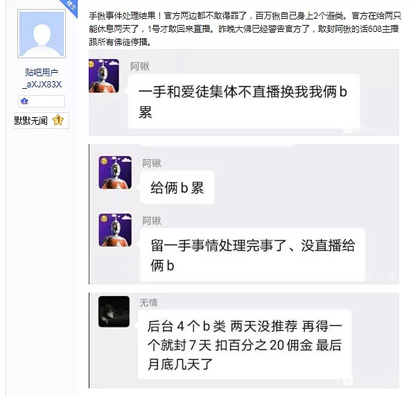 阿手停播奏效,伤敌一千自损八百,舞帝百万锹5个“B类”被封7天