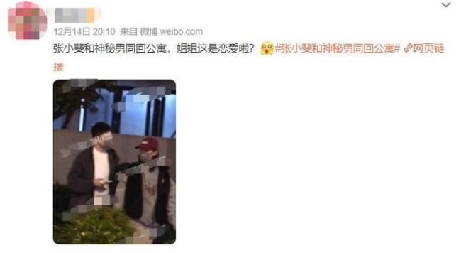 近日,有八卦媒体拍到张小斐和一神秘男子同回公寓。在视频里,该媒体表示张小斐拍完戏后就和神秘男子上了同一辆车,随后两人一起回到了公寓,张小斐熟练地输入密码进去,而神秘男子则是四处张望随后进门,疑似恋情曝光。