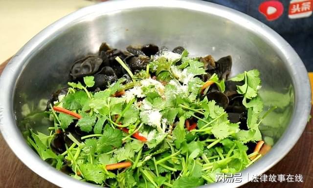 盆里放入小米辣、蒜末、食盐2克,白糖1克,陈醋,生抽,辣椒油,辣鲜露,香油各一勺,再加一勺开水化开调料,不喜欢吃辣的可以少放一点辣椒油和辣鲜露,把木耳和香菜倒在盆里搅拌均匀后,即可装盘食用。