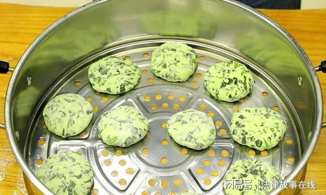 篦子上刷上一层油防止粘连,把饼坯一个一个放进去,中间稍微留点缝隙,防止蒸熟以后粘在一起,再放入两个鸡蛋,等会儿用来调酱用,水烧开以后大火蒸15分钟即可取出饼坯。