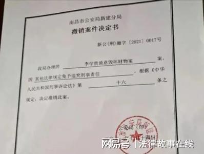 《撤销案件决定书》称,李学贵涉嫌的“故意毁坏财物案”,因“其他法律规定免予追究刑事责任”,最终,警方决定撤销此案。