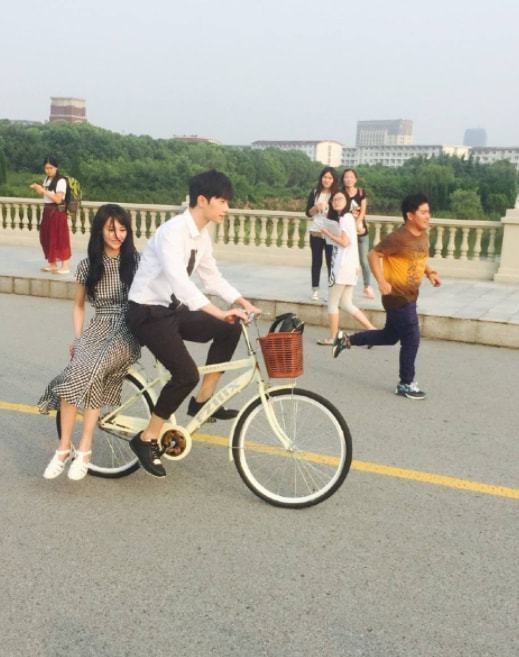 常孟说在一个下着倾盆大雨的下午,他骑着自行车正猛蹬着往家窜,在楼角拐弯处就莫名其妙地和她的自行车撞上了。