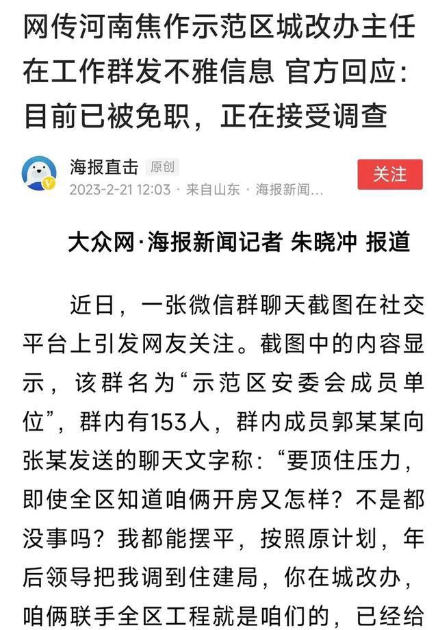 很快,涉事双方男女主角,城建办主任、副主任被双双免职处理。
