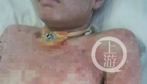 据7月10日医院出具的急诊病历显示,吕洋洋在逃离火灾过程中全身多处烧伤,以面部、胸背部、臀部、双下肢为主,全身伤部位疼痛,伴双足部皮肤破溃出血。据吕先生提供的吕洋洋目前状况照片显示,其身体大面积烧伤红肿,且仍需插管呼吸。