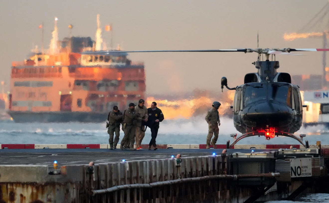 1月5日,委内瑞拉前总统马杜罗抵达曼哈顿下城直升机场,前往位于纽约市的丹尼尔·帕特里克曼哈顿美国联邦法院出庭。路透社