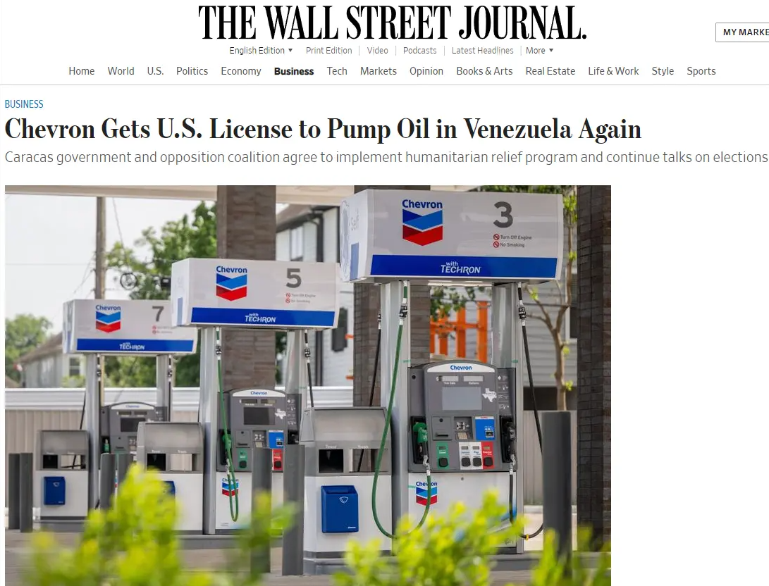 据《华尔街日报》当地时间11月26日报道,美国政府将允许国内的跨国能源巨头雪佛龙公司恢复从委内瑞拉油田开采石油。
