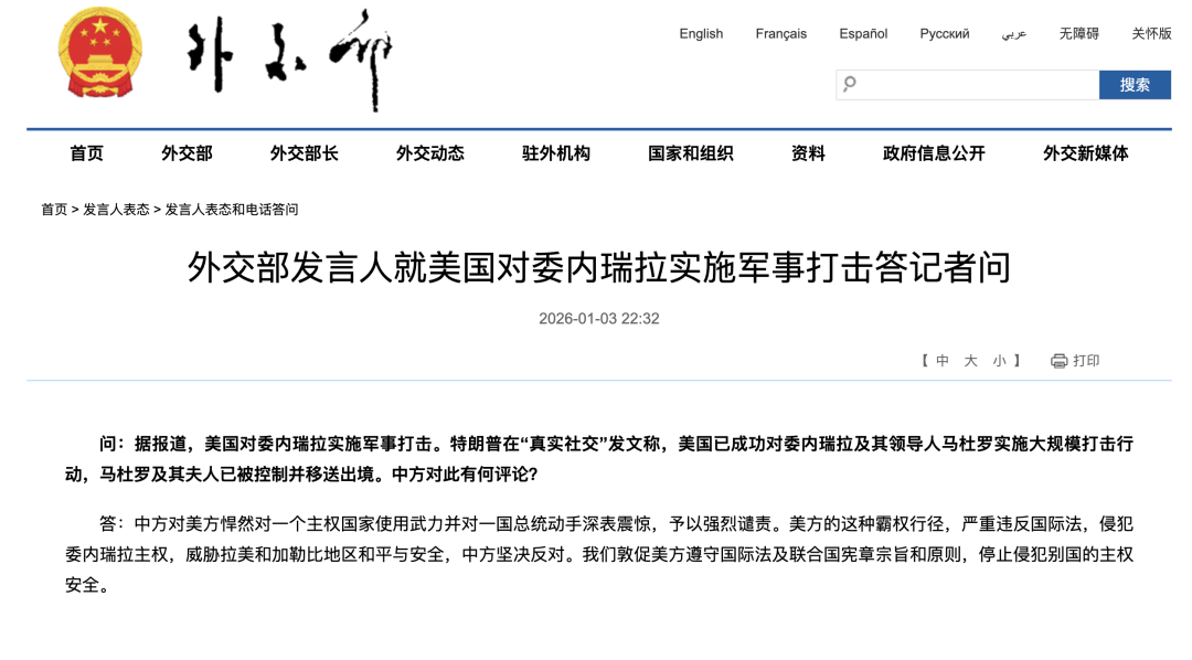 2026年1月3日,委内瑞拉当地时间凌晨2点刚过,美国就违反《联合国宪章》第二条,开始对该国多处地点(包括首都加拉加斯)发动袭击。居民在巨大的声响和闪光中惊醒,空中出现多架大型直升机,社交媒体上开始出现现场视频。网络舆论一片混乱,谣言四起。