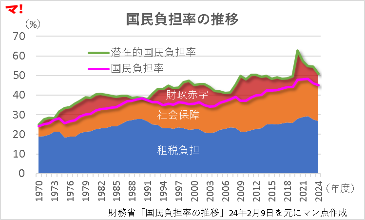 ·第二刀:五公五民的“隐形税”。年轻人的重压还来自隐形税负:社会保险费(养老、医疗)持续上涨。据日本财务省数据,2024年度税负加上社保的国民负担率已达45.1%,若加上财政赤字(潜在负担率)则高达50.9%。一个月薪25万日元的年轻人,扣完到手可能只剩19万。这直接击穿了在东京生存的最低底线。