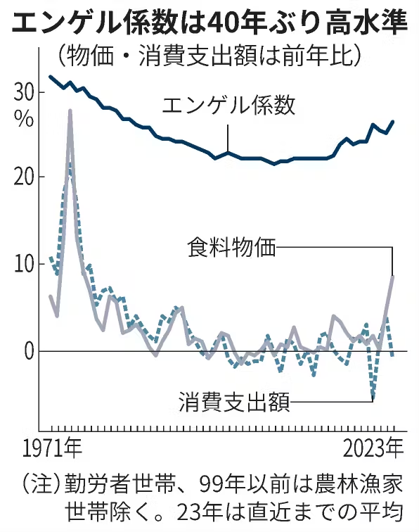 ·第三刀:日元贬值的输入型贫困。日元汇率一度跌破160,进口食品和能源价格飞涨。据日本财务省的家计调查,2024年日本恩格尔系数已达28.3%,为1981年以来43年最高。而对于底层年轻人来说,这意味着连一日三餐都可能开始成为奢望。