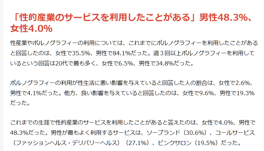 据东京大学医学系研究科调查,日本男性生涯风俗店利用率高达48%,真正做到了有快一半的人都进过“窑子”。