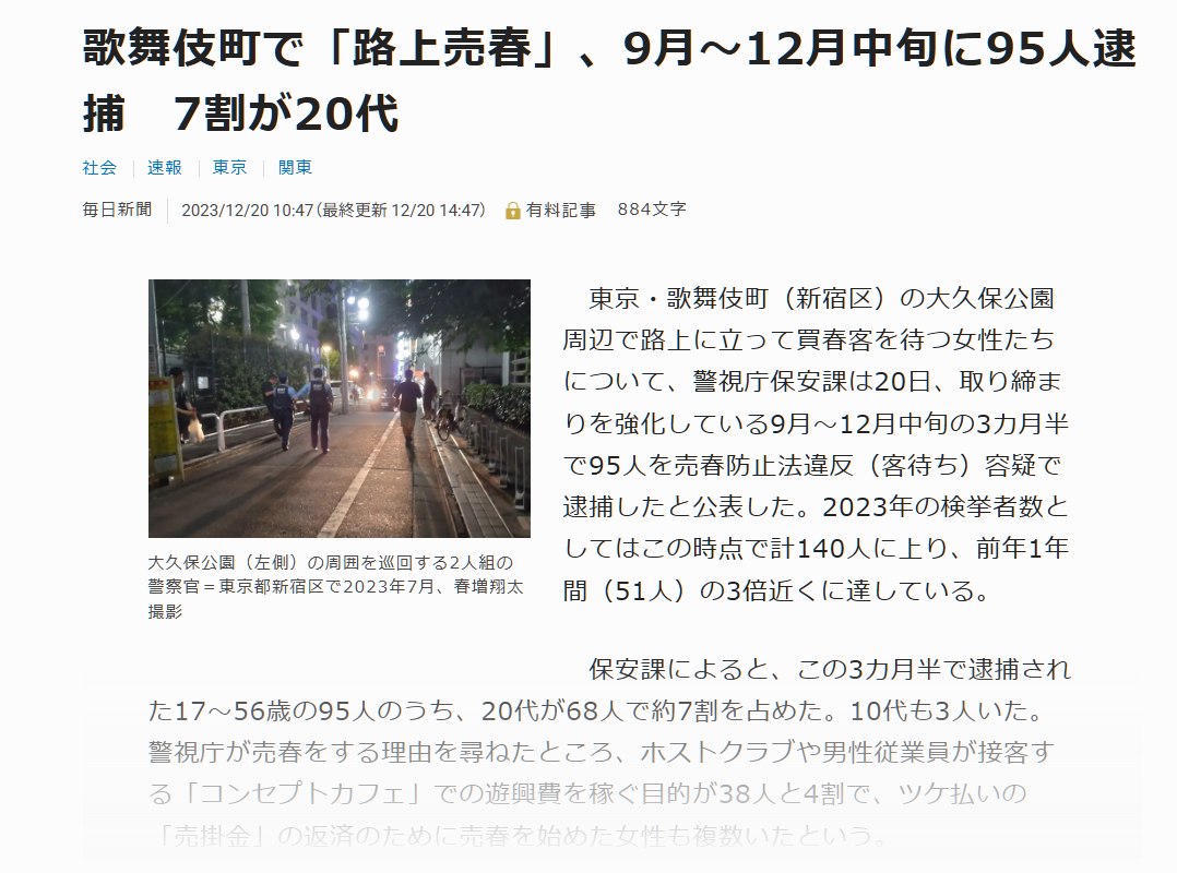 在巨大的生存焦虑和原子化的孤独中,牛郎店这个精神鸦片贩子也乘虚而入。他们精准地贩卖虚幻的“爱”与陪伴,再通过赊账消费制度,一步步将女孩们推入债务的地狱。据每日新闻报道,大久保公园周边被捕的站街女性中,约3至4成背负着牛郎店的债务。