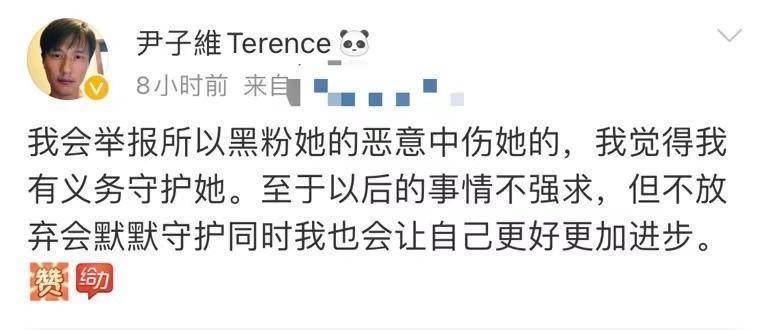 尹子维同样是连续发文,直接当起了护花使者,明确表示自己会举报那些恶意中伤徐冬冬的黑粉,并声称自己不会放弃,会默默守护她。