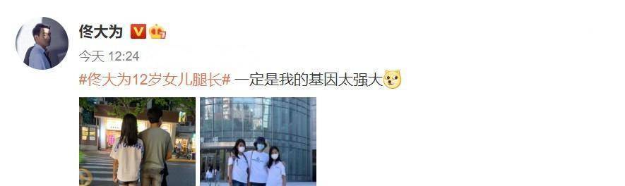 对于话题“佟大为12岁女儿腿长”,他还配上一段文字,十分幽默地写道“一定是我的基因太强大”。而这条动态还成功登上热搜榜,引发网友热议。有网友实名表示出了对母女三人的大长腿造型十分羡慕。还有网友表示看着满屏的大长腿,基因强大无疑。