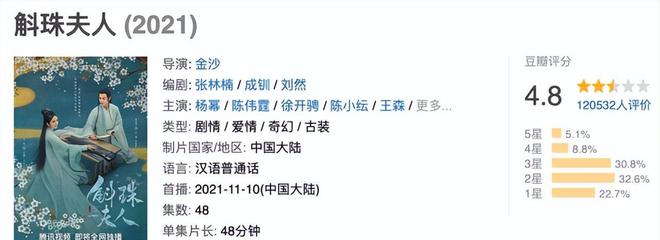 就连杨幂一向引以为傲的古偶剧《斛珠夫人》,豆瓣评分低至4.8,收视率也不足1%。