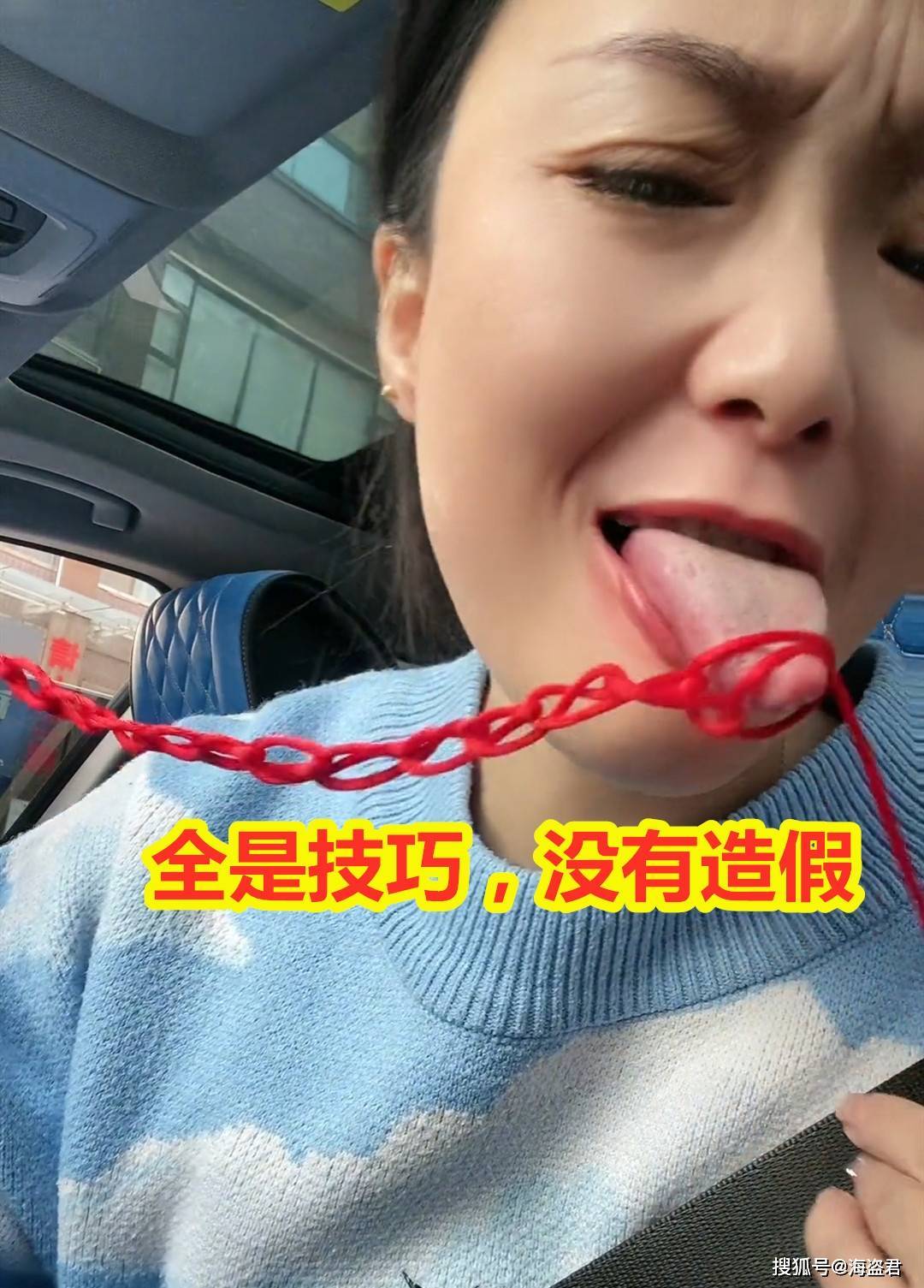 其实仔细看,在女子张合嘴巴的时候,舌头也在不停地绕着绳子翻飞。