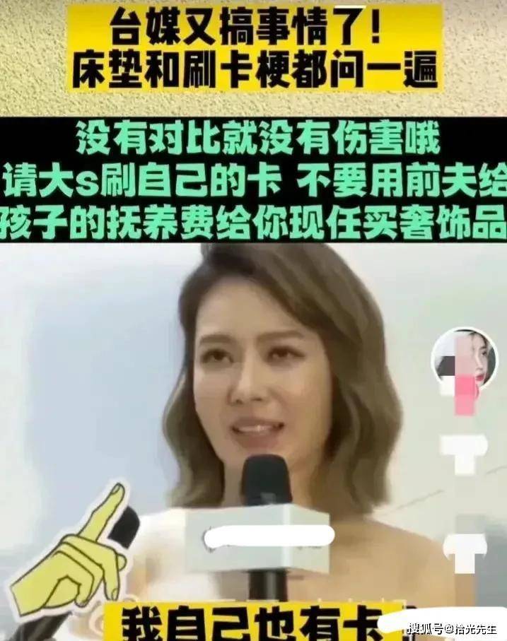 “体面”人设崩了,大S沦为众人嘲讽的对象,就连台湾省内同行都在采访中内涵她刷前夫的卡一事,可谓是十分丢人了。