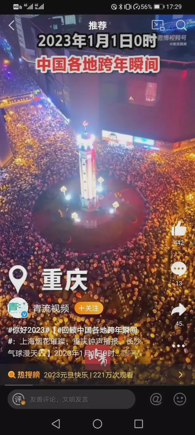 最令人感动的是重庆人民。他们冒着雨打着伞在重庆著名景点解放碑前等待零点钟声的到来。这种对美好明天的向往让我热泪盈眶。除了重庆,西安的大唐不夜城又迎来了人山人海的热闹场面,我好像想起了那个不倒翁小姐姐,不知道他还有没有再次回来营业。