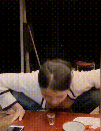 一杯白酒下肚,女子的脸色马上就变了,难受得五官都挤到了一起,不过这种状况只持续了几秒钟。