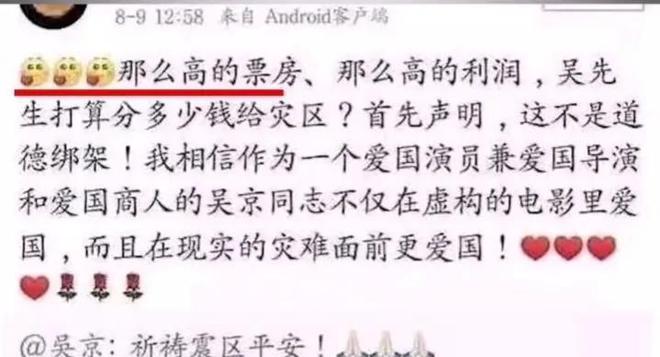就有网友在吴京的微博下“逼捐”