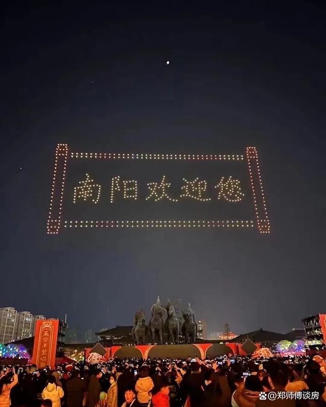 这还不算完,腊月二十八当天,南阳卧龙岗新春大庙会正式开幕,当晚的无人机表演和炫彩激光秀让这片千年龙兴之地再次出圈。