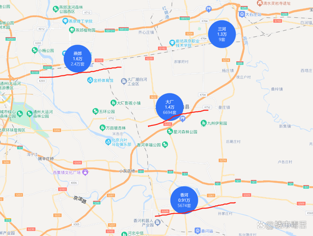 这是北三县在贝壳上的挂牌数量,3万多套,如果再加上想卖、但没挂牌的,其他平台的挂牌量,至少增加50%的供应量。