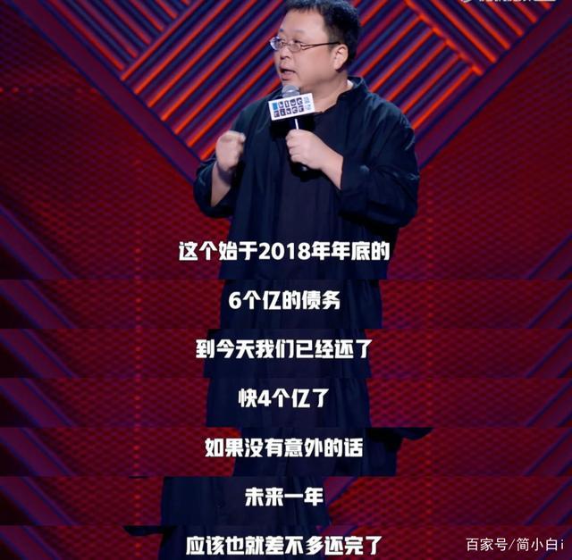 今天,罗永浩在某节目上表示:6个亿的债务已经还了4个亿,未来一年就可以还完,至于还完之后还是否在直播行业,罗永浩没有透漏。