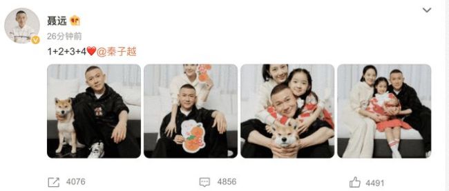 1月22日,男星聂远在微博晒出全家福,并官宣妻子生下二胎的喜讯,配文:“1+2+3+4”。