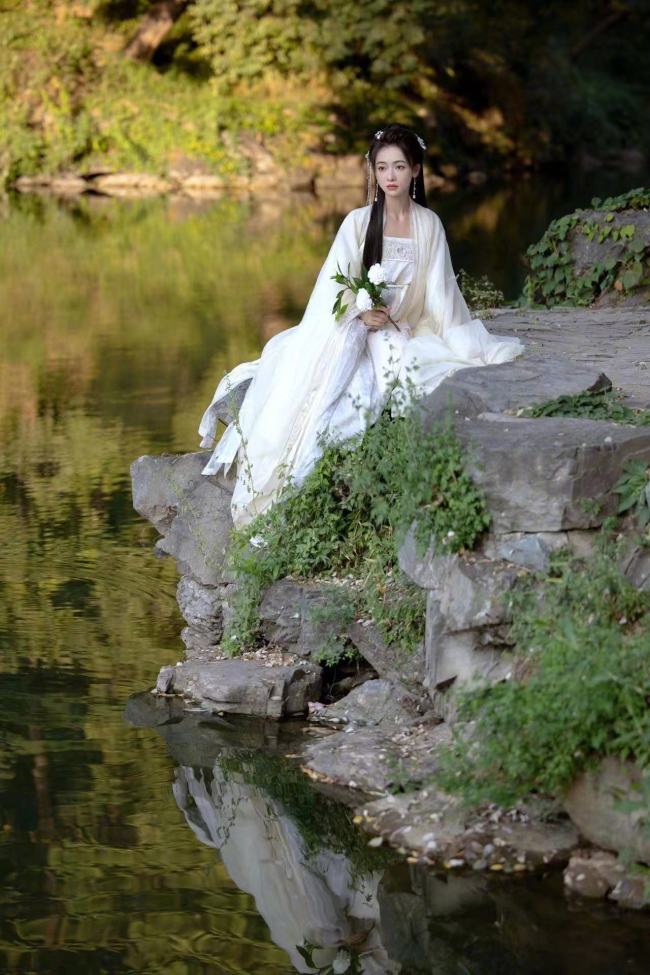 于正晒出一组吴谨言的美照,她身穿白色古装在湖边吸睛十足,整个人气质温柔又清冷,蹲湖边双手托腮,歪头卖萌似少女。
